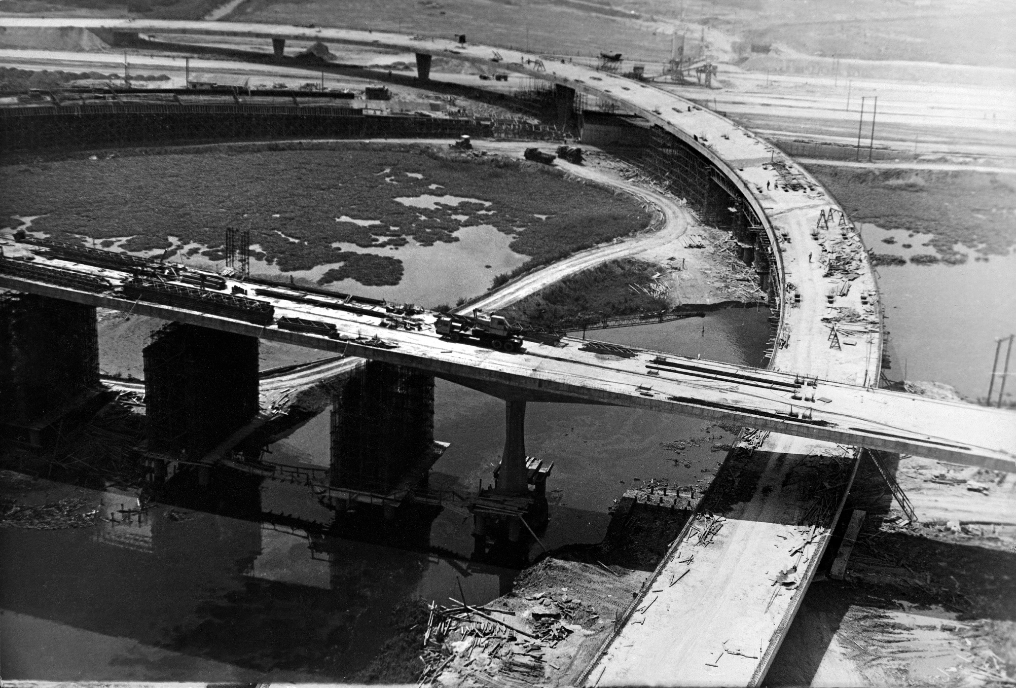 Este complexo que na foto está em construção, hoje é uma das principais vias de tráfego da cidade de São Paulo. Mais conhecido como “Cebolão”, foi inaugurado em 9 de julho de 1978 e interliga três importantes vias: a Marginal Tietê, a Pinheiros e a Rodovia Castelo Branco. Todos os dias trafegam por essa junção de pontes milhares de caminhões, ônibus, automóveis e motocicletas, além de uma linha da CPTM (Companhia Paulista de Trens Metropolitanos) que passa ao lado. Essas e outras histórias valorizam a memória e mostram a riqueza das atividades de transportes no país.