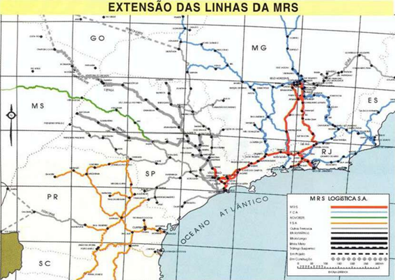 Serpa – A sigla MRS significa Minas-Rio-São Paulo. Então é exatamente esta nossa linha, a chamada Malha Sudeste, que compreende as antigas SR 3 e SR 4 (ver mapa na página 08). Através dela, temos interligações para o Nordeste, para a região Centro-Oeste e Oeste de Minas; nos interligamos com a FEPA-SA, FCA e EFVM, e chegamos até os portos de Santos, Rio de Janeiro e Sepetiba. É um trecho com enorme potencial a explorar, ligando regiões nevrálgicas do Brasil.