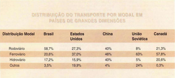 Serpa – Sim. Para se ter uma idéia, basta analisar o quadro comparativo de utilização dos vários modais em países de proporções continentais, como o Brasil, para ver a diferença. Ou seja, como aqui a rodovia impera, em relação a outros modais. No Canadá, por exemplo, a ordem de grandeza entre o transporte ferroviário e o rodoviário é praticamente o inverso da nossa. Se compararmos à União Soviética e China, então, é um absurdo (Veja quadro à página 12).
